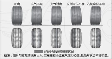 - 使用前請檢查車輛輪胎使用情況,是否漏氣、磨損嚴重或出現破損,如有上述情況,禁止使用。請及時調整前束或更換新的輪胎,否則會損害輪胎壽命或者造成爆胎等危害人身安全的事故。