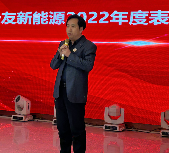 2023年3月4日,綠友集團成立30周年暨綠友新能源2022年度表彰大會在江蘇淮安舉行。集團總裁李敏董事長親臨會場,新能源總經理張得玉講話并宣布活動開始。綠友新能源電動車輛全體員工和翼萊工廠全體員工參加了活動。