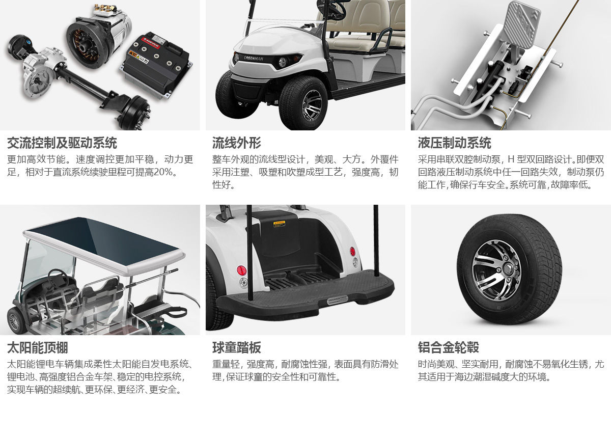 同向四座高爾夫球車,可以供4名球手和2名球童同時(shí)駕乘,也可以供3名球手和3名球童同時(shí)駕乘。
