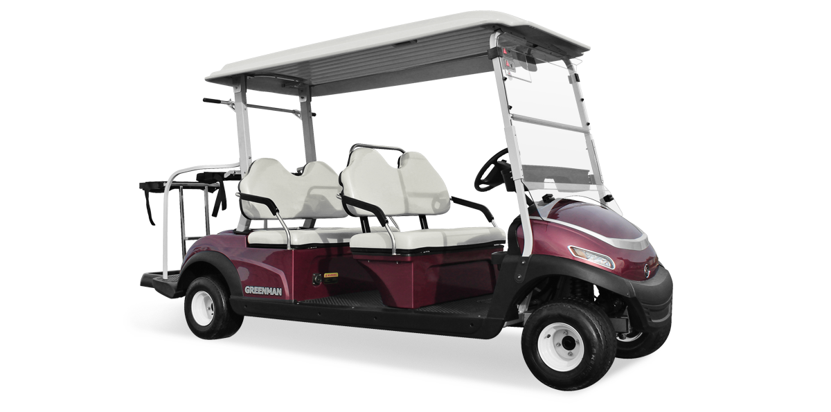 同向四座高爾夫球車,可以供4名球手和2名球童同時駕乘,也可以供3名球手和3名球童同時駕乘。 本車秉承GREENMAN 電動車一貫的優雅、高端的理念,造型美觀大方; 2500mm超大軸距、舒適的豪華座椅、充分考慮人機工程學的靠背和扶手設計,