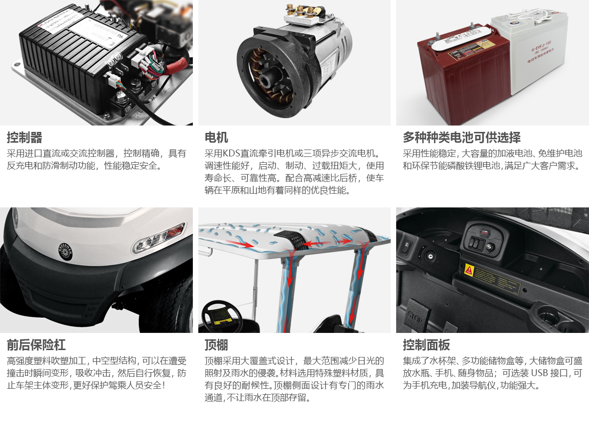 讓GREENMAN兩座球車為您帶來優秀的操控性、舒適性和安全性的體驗。 根據電控類型分為直流、交流等車型,鉛酸、鋰電等不同電池配置,可以滿足不用客戶的需求。